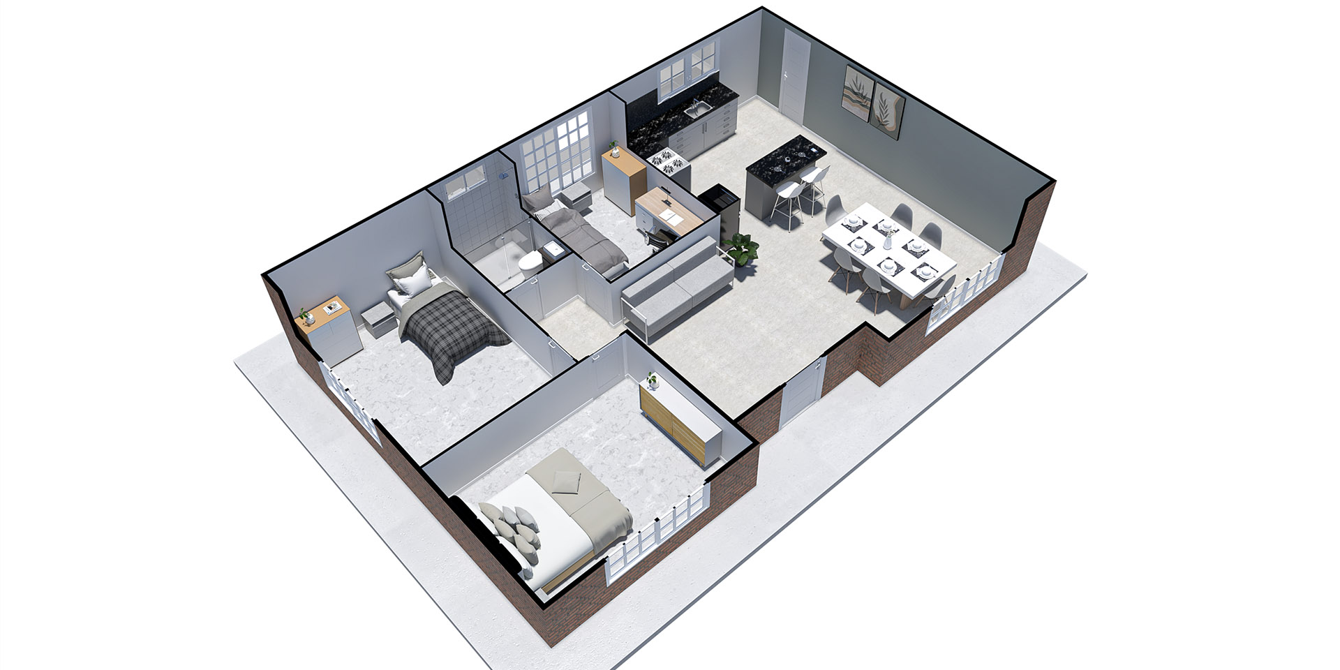 PAREDES INTERIORES: Revestidas en roca de yeso