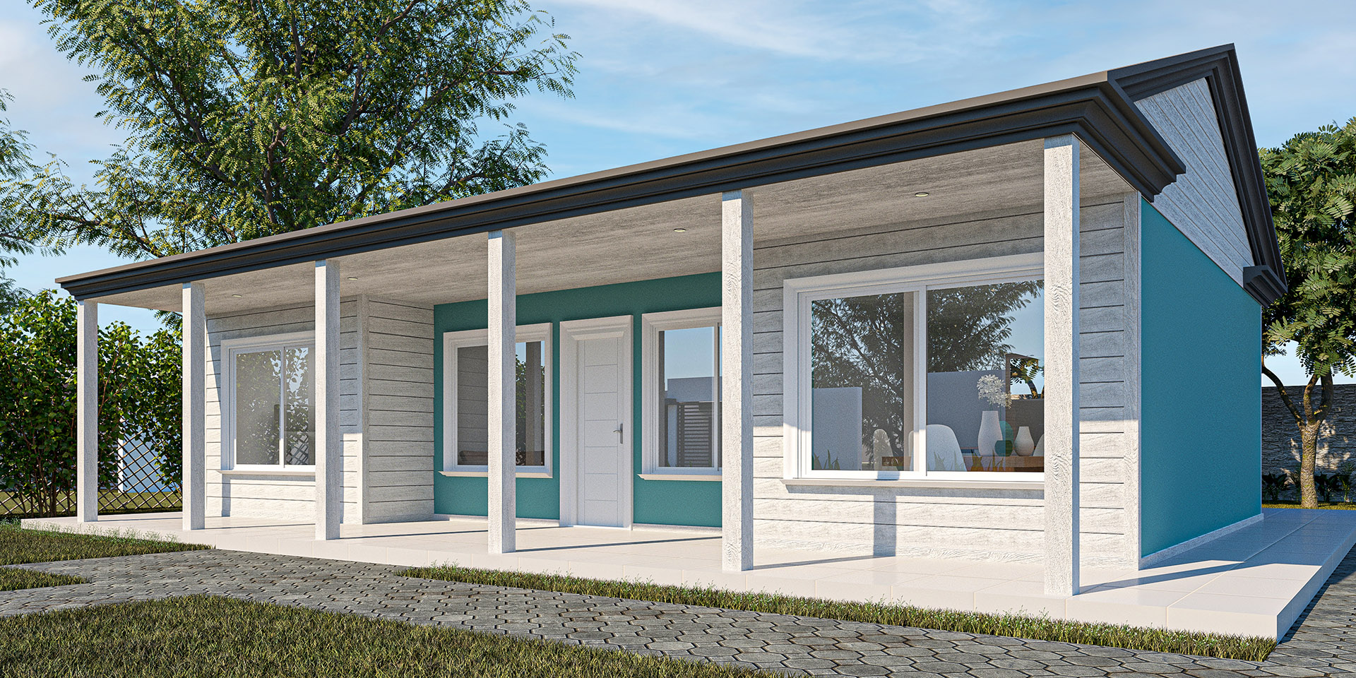 Con el frente revestido con tablones siding (lisos o simil madera).